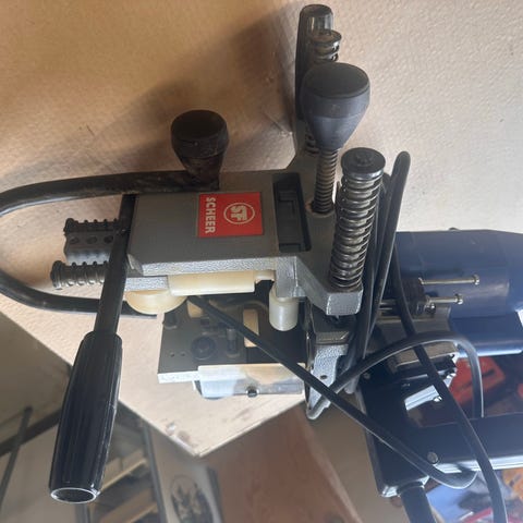 Omas K426 fresesett for trebearbeiding. Settet består av flere sirkulære fresestål/hoder i metall for montering på aksel. Delene er beregnet for profilering og bearbeiding av treemner, med utskiftbare skjær og mulighet for ulike profiler, vist i vedlagt diagram i kofferten.