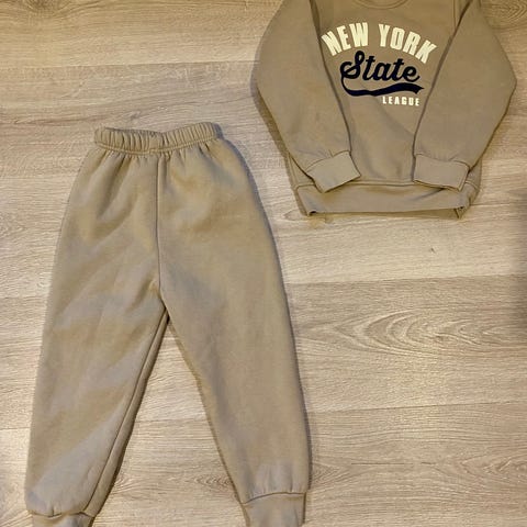 Vikafjell joggedress for barn i størrelse 92, unisex. Sett i grå farge som består av genser og bukse. Mykt og behagelig materiale egnet til hverdagsbruk og lek. Passer til både jenter og gutter.