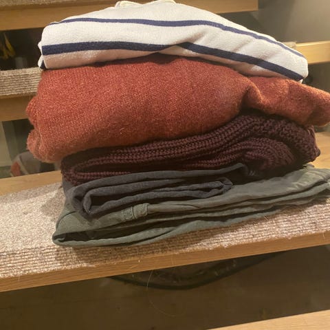 Som du ser på bildet – dette er en stor pakke med ulike klær, klare til bruk 👌