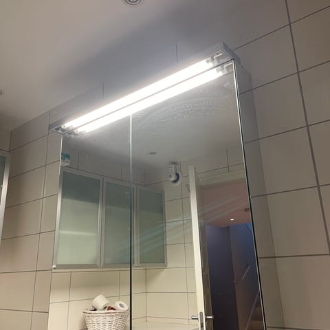 Baderomsskap med speil utenpå og to hyller inni