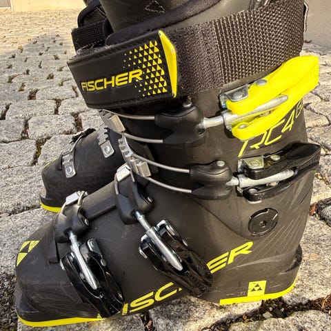 Fischer Ranger Free 130 alpinstøvler i svart med gule detaljer.