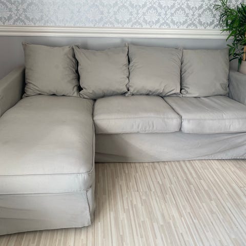 godt brukt sovesofa med sjeselong.sofa står på kjelleren og trenger vask.