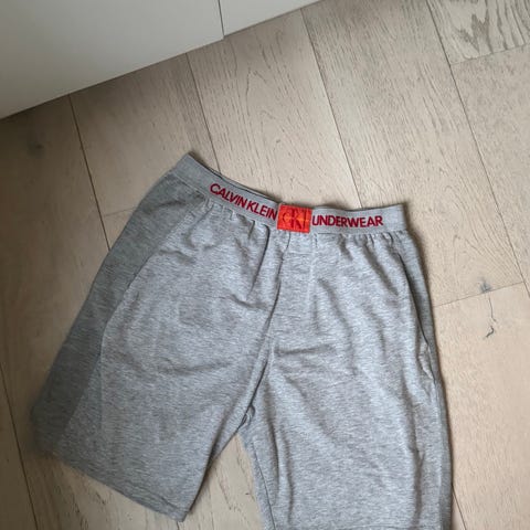 Calvin Klein sett med t-skjorte og shorts for herre i størrelse M. Settet er grønt med svarte sidepaneler og tydelig Calvin Klein-logo langs siden. Laget i bomullsmateriale med strikk og snøring i livet for justerbar passform. Egnet som hverdagsplagg eller til fritidsbruk.