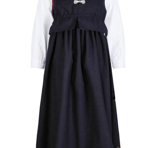 En helt super festdrakt / bunad i str 1-2 år, 86 cm, 18 mnd med hel dress og skjortebody. Noen bruksmerker, fine detaljer.