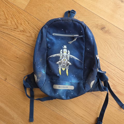 Godt brukt Beckmann sekk , svart med pennal, mini sekk m/buttons 🐣