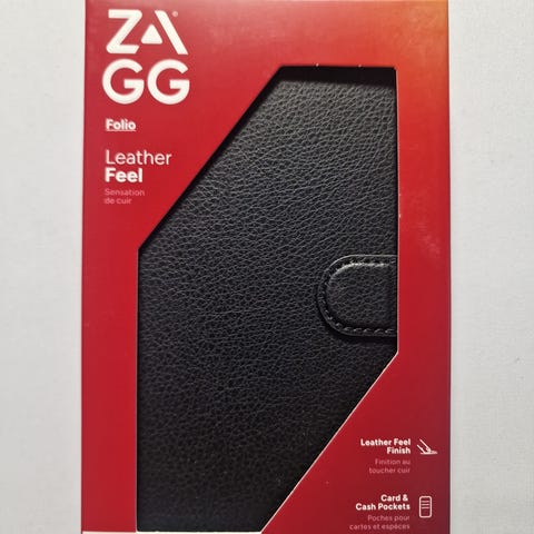 Samsung Galaxy A25 Zagg Folio telefondeksel i svart med lærfølelse. Dekselet har folio-design som dekker både for- og bakside av telefonen. Innvendig er det kort- og kontantlommer. Slim profil som gjør at telefonen fortsatt er lett å ha i lommen. Dekselet har stativfunksjon for visning i landskapsmodus, magnetlukking og utsparinger for knapper, kamera og porter tilpasset Samsung Galaxy A25.