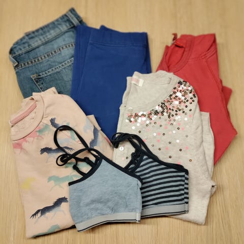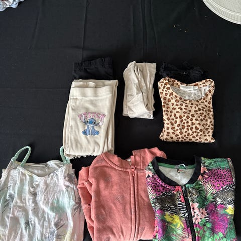 Klespakke med det meste pent brukte klær i str 134 og 140. Den løse toppen har litt nupper (se bildet). Fine, gode sommerklær!