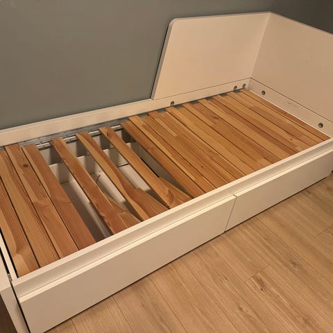 Selger en velholdt og utrolig praktisk JYSK ULDAL dagseng/enkeltseng. Dette er en ideell seng for barnet som skal flytte ut av sprinkelsengen, eller for et ungdomsrom.