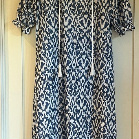 Sommerkjole for dame i størrelse XXL. Lett stoff i antikrøll. Kjøpt på designbutikk i Danmark, ny pris 1399.