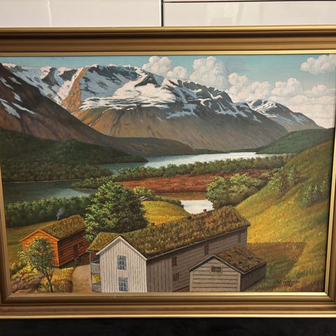 Flott bilde/skisse-utkast/flrste idetegning til et større maleri som henger i Brakanes Hotell.Flott dette.bud