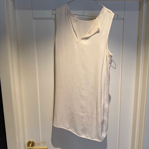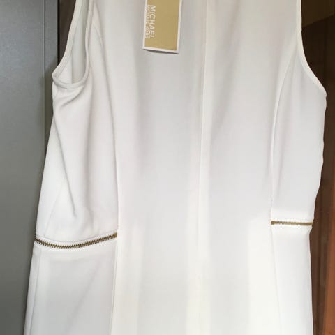 Michael Kors Topp for dame i størrelse M. Kjolen er beige og laget i polyester. Ermeløs modell med enkel, rett fasong og lett avrundet kant nederst.