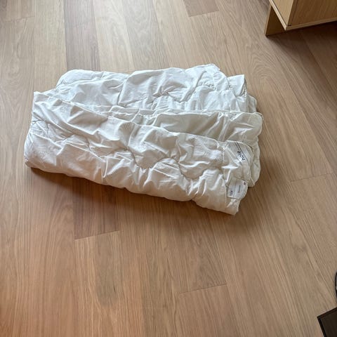 200x160, 30cm høye, bright white. Vasket, helt som nytt. Veldig god kvalitet og meget behagelig. Kjøpt hos Dun of Norway, ny pris 629.