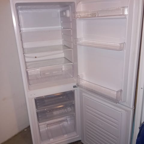 Elto kombiskap i hvit utførelse. Skapet har frysedel øverst og kjøledel nederst. Innvendig er det flere trådhyller i kjøledelen, grønnsaksskuff nederst og dørhyller for oppbevaring av flasker og mindre varer. Frysedelen har egen dør og innvendig hylleløsning. Passer til vanlig kjøkkenbruk med behov for kombinert kjøl og frys i ett skap.