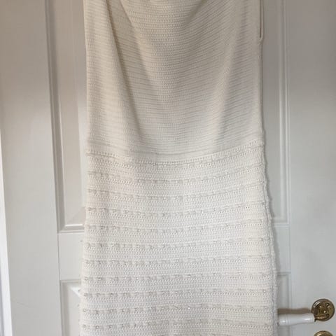 GUESS hverdagskjole for dame i størrelse M. Kjolen er hvit og laget i polyester. Modellen har plissert stoff og er ermeløs, med V-utringning foran og rett rygg. Lengden går omtrent til under kneet, avhengig av høyde. Egner seg som enkel hverdagskjole eller til mer pyntede anledninger, avhengig av styling.