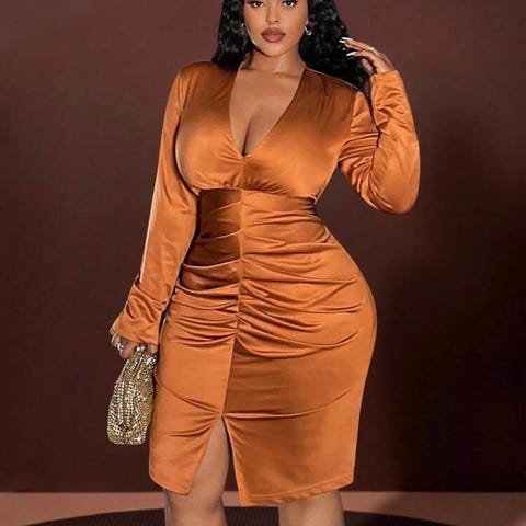 Vakker elastisk kjole, laget av myk velur, størrelse L