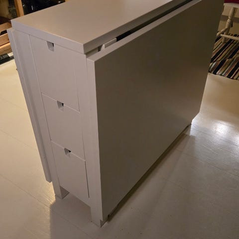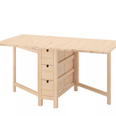 Selger et Norden IKEA slagbord i fargen bjørk grunnet flytting. Nypris 3 495 kr. Bordet passer utmerket som kjøkkenbord eller hobbybord, og har seks skuffer med god plass til diverse. Bordet kan enkelt slås sammen og tar lite plass.