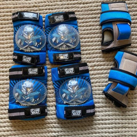 NKX beskyttelsessett for barn i blå og hvit farge. Settet består av knebeskyttere, albuebeskyttere og håndleddsbeskyttere. Ytterskall i hard plast for støtbeskyttelse og polstret innside for økt komfort. Justerbare stropper for tilpasning rundt knær, albuer og håndledd. Egnet til bruk ved for eksempel rulleskøyter, sparkesykkel eller skateboard for ekstra beskyttelse ved fall.