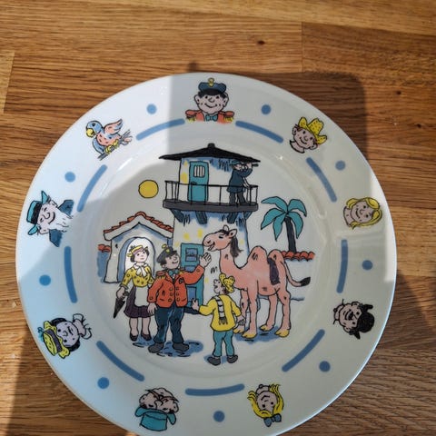 Figgjo barnetallerken flat og dyp. Motiv av Torbjørn Egner fra Kardemomme by.