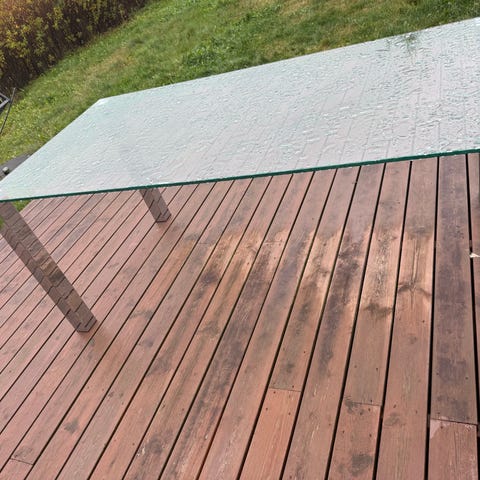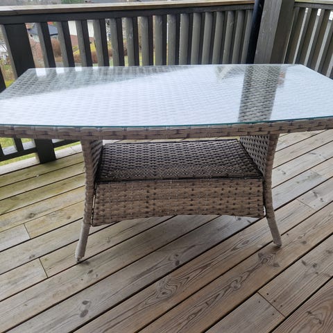 Ute spisebord, lagret inne.