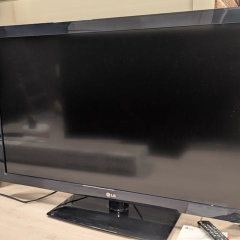 LG TV 46 tommer. Flatskjermmodell med tilkoblinger plassert på baksiden/side av skjermen. Passer til bruk i stue, soverom eller andre oppholdsrom. Fjernkontroll vises på bildet følger med.
