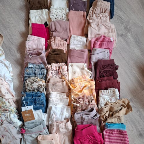 Jeg selger bukser, i god stand, ingen hull, noen har små flekker, brukt til størrelse 116 og 122.