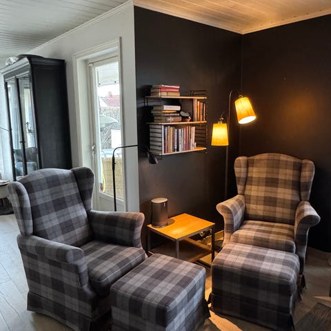 2 hvilestoler med fotbrett, 900kr pr stk.