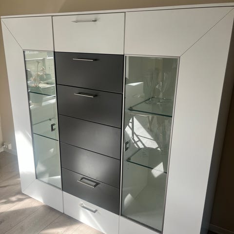 Skapet er strøkent og solid, og ser veldig pent ut i stuen.
