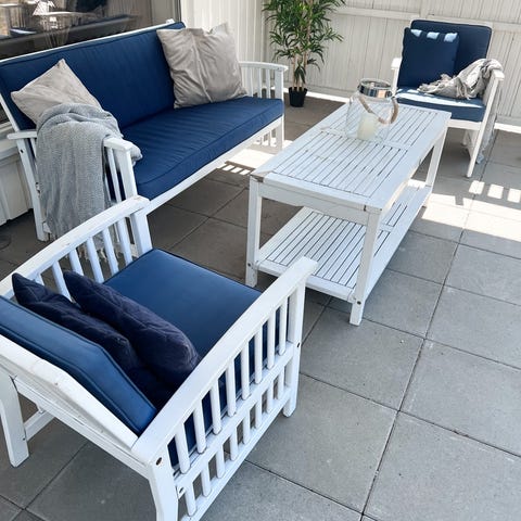 Selger et stilrent og komfortabelt loungesett fra Plantasjen.