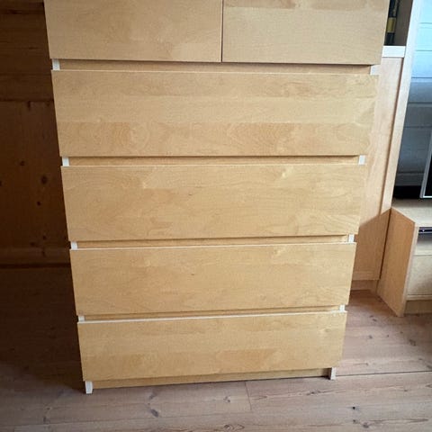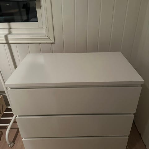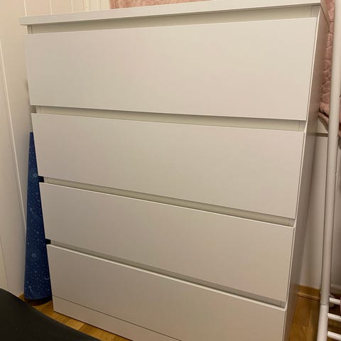 Malm kommode med 4 skuffer selges. Noen bruksmerker, men hel og fin.