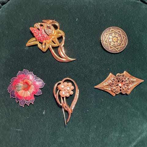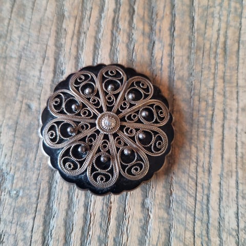 3 brosjer i sølv og emalje + stort anheng i sølv perfekt til bunaden