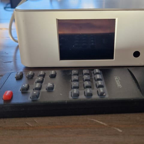 Volumknappen fungerer ikke (litt tygd på av en liten hund, se bildet), volumet justeres med kontrollen.