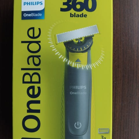 En elektrisk barbermaskin/trimmer med OneBlade 360-blad som kan beveges i flere retninger for å nå vanskelige områder. Egnet til trimming, kanting og barbering av skjegg i ulike lengder.