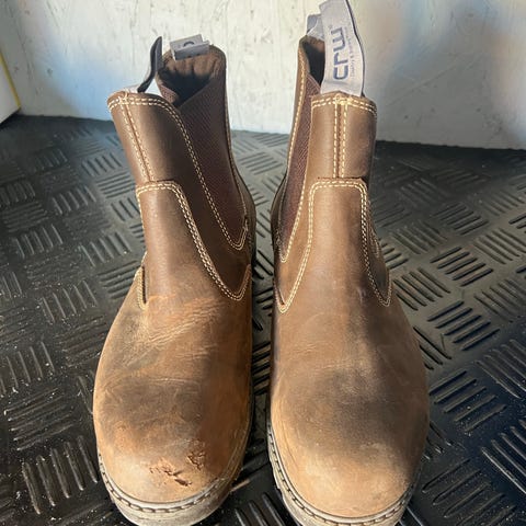Rideskoene er brune jodhpurs med stålhette på tåparti. Størrelse 35, farge brown. Kraftig yttersåle med mønster som gir godt grep. De er litt god i størrelse.