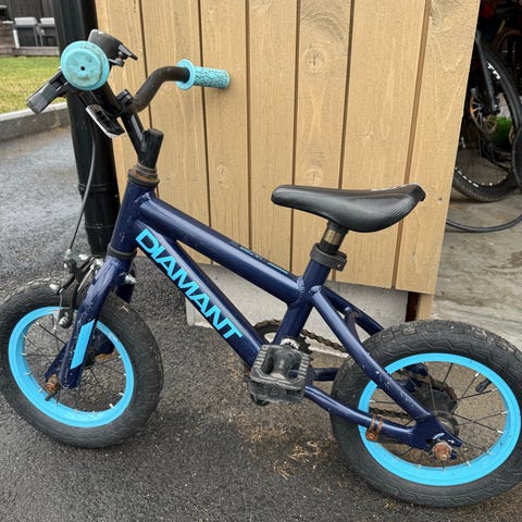 Diamant barnesykkel/ Balansesykkel med 12" hjul i blå farge. Sykkelen har lav innstigning og justerbart sete som gjør det enklere å tilpasse høyden til barnet. Passer godt som første sykkel for mindre barn som skal øve på balanse og sykling på korte turer på asfalt eller jevnt underlag.