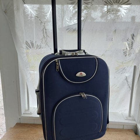 Praktisk og søt barne-trillekoffert med hjul selges rimelig. Åpnes omtrent som en sekk. Justerbart håndtak. Et stort rom, samt en lomme med netting og glidelås innvendig. Ekstralomme foran. Søt design. Ca. 44 x 32 x 15 cm. Pent brukt.