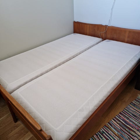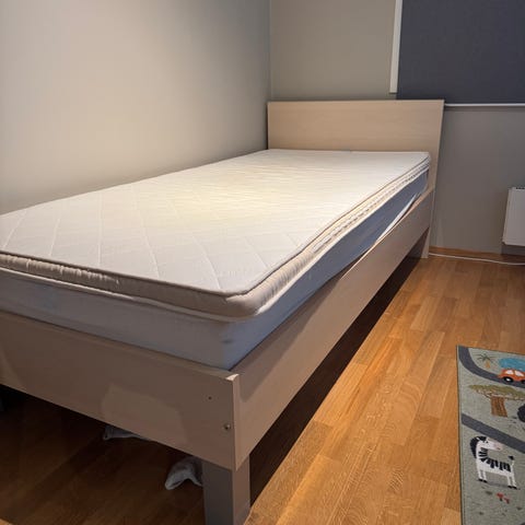 Den passer godt til gjesterom, hytte, barnerom eller som en smal ekstraseng, og tar lite plass samtidig som den er praktisk i bruk. Sengen er brukt og har naturlige bruksmerker som følger med alderen, noe som bare gir den mer sjel.
