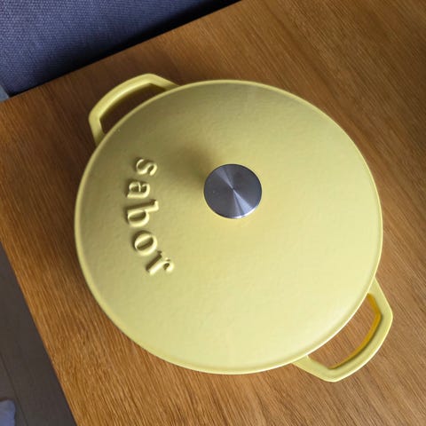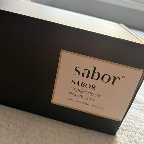 Sabor støpejernsgryte 4,4l i beige. Ny, kommer ikke med emballasje. Selges da den er ubrukt.
