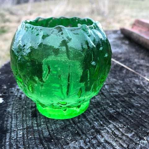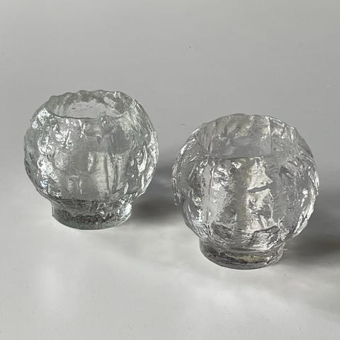 Fin telysholder i støpt glass fra Randsfjord glassverk.