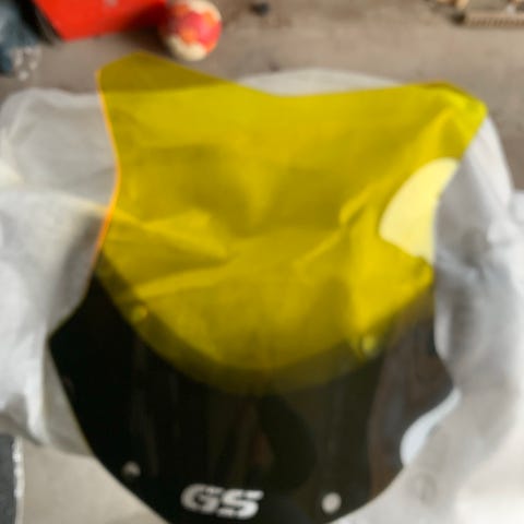 Givi vindskjerm for motorsykkel. Skjermen er i gjennomsiktig plast med sort nedre del og festepunkter integrert i skjermen. Egnet som erstatnings- eller ekstra vindskjerm for å gi vindavledning foran fører.