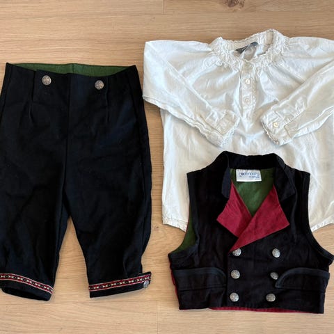 Selger en veldig pent brukt festdrakt i str. 92, men skjorte. Begge deler er kjøpt på Cubus. Veldig pent brukt og vasket. Ingen synlig flekker.