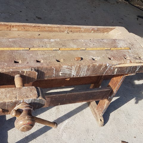 Gammeldags syltepresse i tre, med skruer dreid i tre og med tremuttere.
