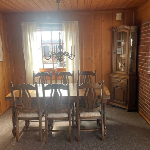 Spisestue i kirsebærtre med innleggsplate og 6 stoler