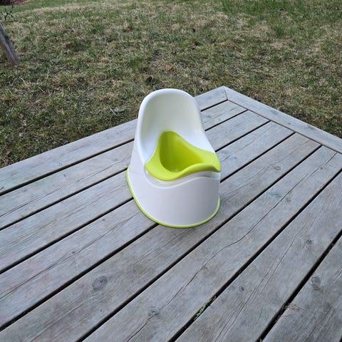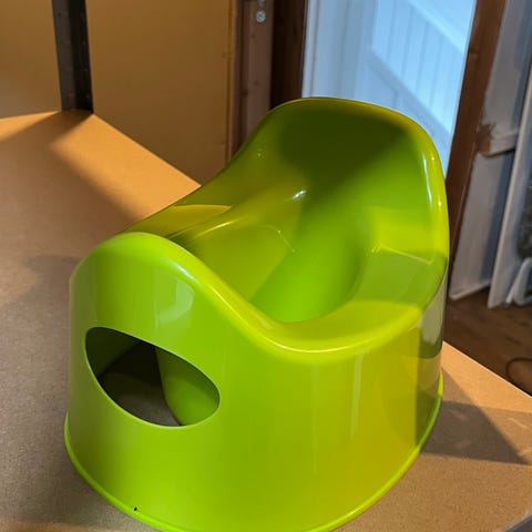 Potte gis bort. Har «trekke-ned-lyd» når man trykker på knappen.