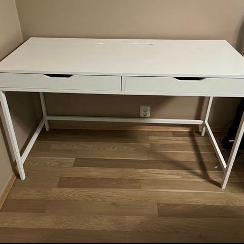 Selger et hvitt IKEA ALEX skrivebord (132x58 cm), i veldig god stand. Skrivebordet fremstår som svært pent brukt, med kun to helt små merker på bordplaten (se bilde 4 og 5).