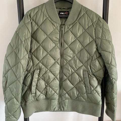 Quiltet damejakke i XL, oversize passform. Fra H&M.