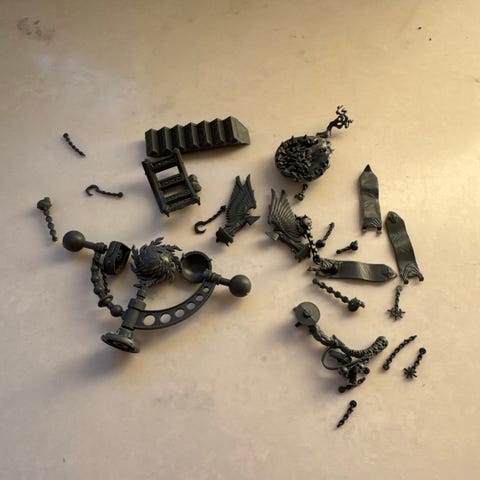 Usikker på hvem som har laget dette. Virker som det er resin. Noe (ork-skilt?) er knekt av (se bilder).