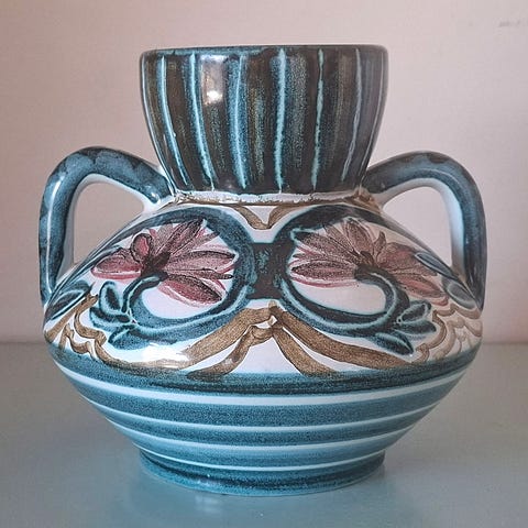 Fin vintage vase, muligens dansk fra Kastrup Label, Ocean Blue serien av Jakob E Bang ?