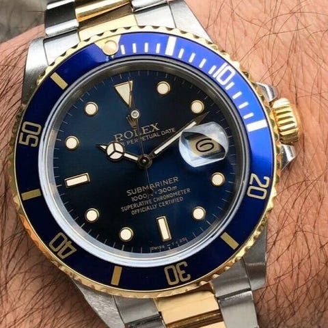 Stål og gull. 18 K. Automatikk. Dato. 2008.