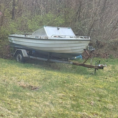 Selger en eldre båthenger som kan brukes som opplagshenger. Ny vinsj, nytt nesehjul og nye ruller i midten. Knirker litt fra hjul lager, men triller greit.