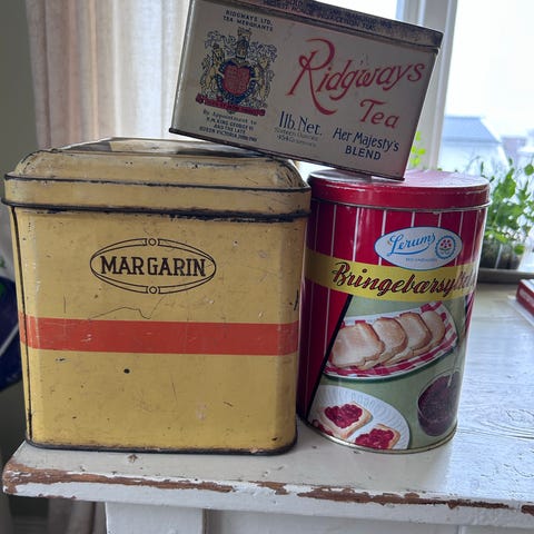 Boksene er i original stand med naturlig patina og noe bruksslitasje som gir autentisk vintage preg.